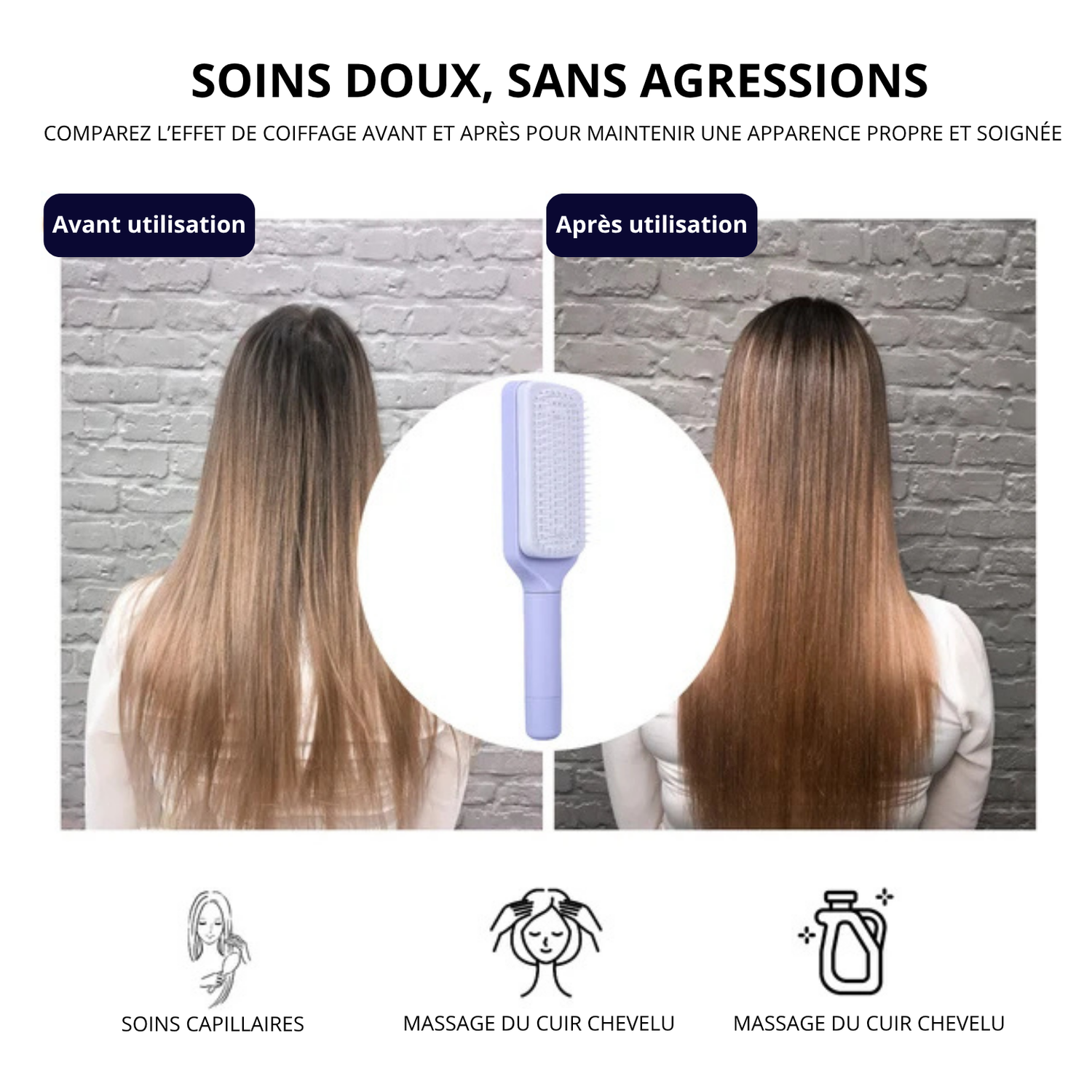 Une brosse pensée pour vous : Fini les galères de démêlage. HairLift™ vous offre une expérience agréable, efficace et douce à chaque passage.